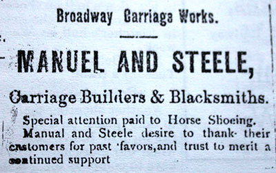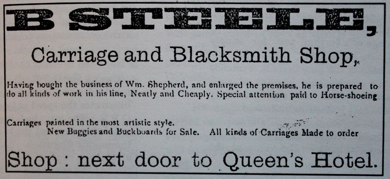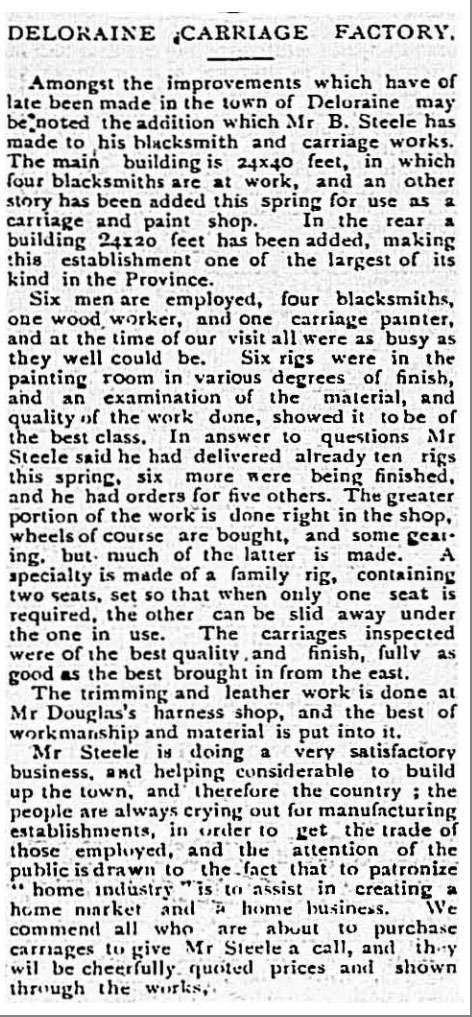 The Deloraine Carriage Factory run by Mr. B. Steele was for a short