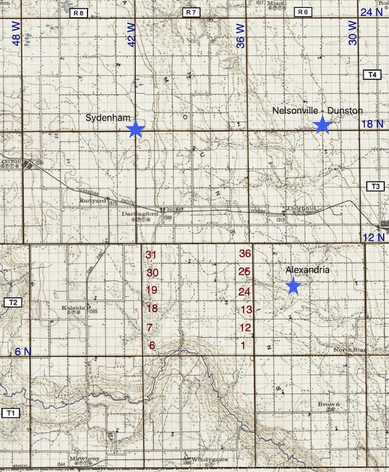 Trail, the village of Alexandria, Alexandria School No. 73, Elam School
