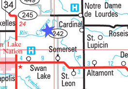 Today the Church and Cemetery on the corner of Rd 34 N 55W (N49.50203,
