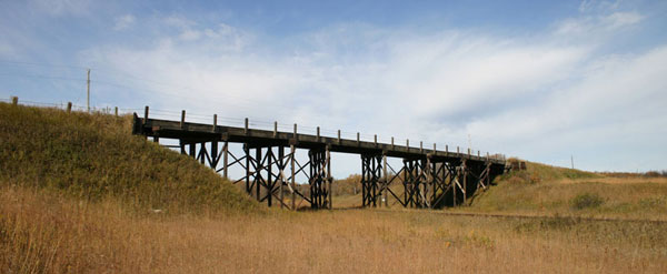 The “Bell Crossing”, a few kilometres southeast of town used to be on the main road from Rivers to Brandon. It was a dangerous crossing where the railway line curves and enters Grant’s Cut. Because of the curve and the cut, road traffic didn’t have a good view of oncoming east-bound trains. To solve that problem, just to the east side of the crossing there was a post about twelve feet high which consisted of a steel pipe about six inches in diameter. Near the top were cross arms similar to the cross arms seen at rail crossings today. But above the arms on the top of the post there was a large steel bell. This very loud bell was activated by oncoming trains just as signal lights are activated today. In the summer of 1938 an overhead bridge was built just a few yards to the west of the crossing so the crossing was no longer needed and the bell was removed. In the 1954 Highway 25 was completed and it became the main road from Rivers to Brandon and points to the south and east. ![]() ![]() ![]() ![]() Train Tracks Story.... ![]() |