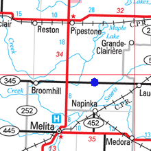 ![]() Photo and Info from Historic Sites of Manitoba Near the school building is a cairn, erected in July 1988, commemorating the teachers, students and families of Bernice School No. 547, which was established as Gould School at SW22-5-26W in the Rural Municipality of Albert, and operated between 1888 and 1914. It became Bernice (Berneice) School in 1914, situated at SE23-5-26, continuing until 1965 when it became part of Napinka Consolidated School No. 2369. A nearby station of the Canadian Pacific Railway, also named Bernice, existed at NE14-5-26 from 1906 to 1952.
