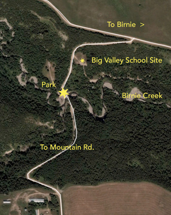 Big Valley Great Picnic spot! ![]() The above ;photos were taken before the extensive flooding of 2011 - 2012, changes the creek bed - here are some 2021 & 2022 photos... ![]() ![]() Big Valley School - overlooking the Park Big Valley School No. 2109, (1923 - 1958). A large boulder was moved to the site in July 2007 and the attached plaque was dedicated to the pioneers, teachers, school trustees, and students of Big Valley School. N50.44694, W99.50459 http://www.mhs.mb.ca/docs/sites/bigvalleyschool.shtml ![]() A school with a view! ![]() Road: 59* 25' 57.97" N 99* 30' 22.03" W Park: 50* 26' 45.37" N 99* 30' 20.06" W |