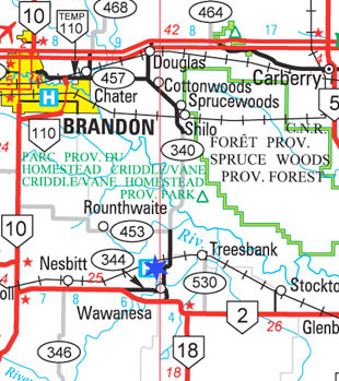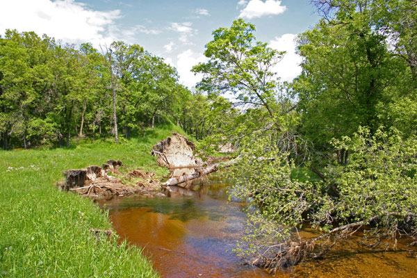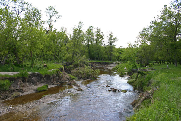 A gravel road off of the highway a few km north of Wawanesa is a great place to walk along Black Creek.