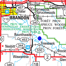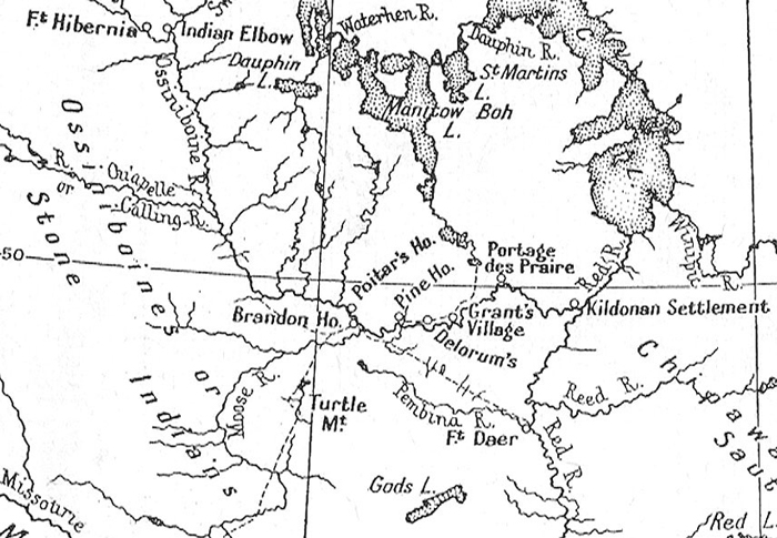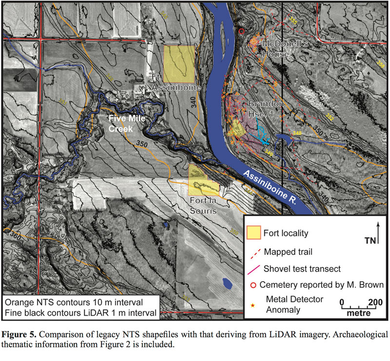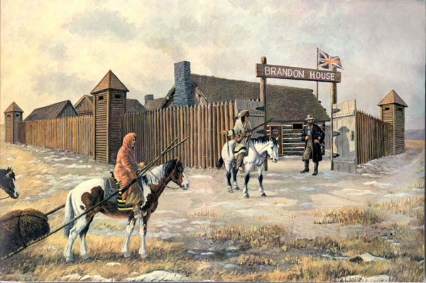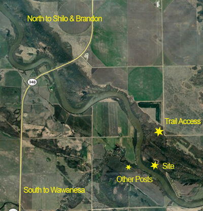 One of the most historically significant spots in Westman. The first Brandon House was established here in the fall of 1793 by "Mad" Donald McKay in the service of the Hudson's Bay Company. It was one of several competing Fur Trade Posts in the "Souris Mouth" area, which was the hub of economic activity for what is now Southwestern Manitoba. More History... ![]() Brandon House - 1810 - Sketch by Larry Jamieson ![]() Art by Terry McLean ![]() The trail - rough but quite passable in dry weather. ![]() This photo was taken from the north. The first Brandon House was located in the small clearing just right of centre, about 50 metres north of the river. The YY and Northwest Co. posts were south of the river. The clearing remains free of trees, perhaps because of all the refuse etc. ![]() The clearing created for the post remains open 200 years after the operation moved upstream. The depression visible at the centre is over a metre deep - likely a cellar. ![]() River landing - note the island - also visible in the aerial photo and on Google Earth Directly accross is Mair's Creek, (also "Five Mile Creek") along which as many as four other Fur Trade Posts operated between 1793 and 1810. ![]() Trail Head: 49.680033 / 99.620794 Site: 49.675260 / 99.627355 ![]() ![]() The site of Brandon House 4 - upstream from the first sites. ![]() Recent Reseach Report More than pretty pictures: Drones, bison kills, and considerations of cultural landscapes Article · January 2019 Scott Hamilton Lakehead University Thunder Bay Campus ![]() |