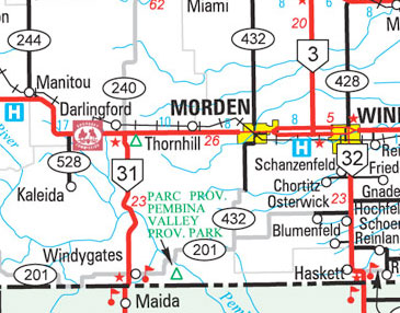 At the crossing of Dead Horse Creek (called Le Cheval Mort by the French fur traders) at a place first known as Cheval - later...Morden.