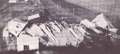 When a new rail line was built into a region the plan was to have a town about every fourteen kilometres. By the early 1900’s there was enough rail line competition to give the grain companies an incentive to be more accommodating. The villages of Goodlands and Waskada were created when the C.P.R. line was built in 1899-1900. In 1906 an extra stop, called a siding, was built, at about the midway point and in 1913 the first of two elevators was open for business. Farmers to the north and south of the new Cranmer siding appreciated the shorter trips to deliver grain. The U.G.G. elevator at Cranmer closed in 1975, and like so many other sidings, whistle stops and hamlets, it disappeared from the maps. ![]() Train and Plow at Cranmer ![]() Elevator Collapse ![]() ** Photos from "Bridging Brenda United Grain Growers grain elevators at Cranmer (1971) http://www.mhs.mb.ca/docs/sites/cranmerelevator.shtml ![]() What the Rats of Cranmer Knew... ![]() |