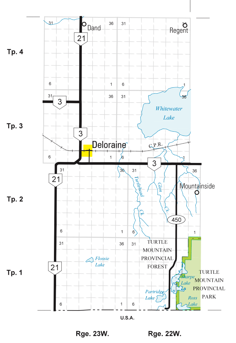 Municipal Website https://delowin.ca/ ![]() Sites to See Bill Poole Natural Area Lake Metigoshe Metigoshe Natural Area Lake Stanley Visit Communities (Past & Present) Dand Moberly Mountainside Naples Regent Vantage Points Stories Beginning of the Metigoshe Community Web / PDF Vol. II, Page 8 ...despite their frequent visits to Turtle Mountain the Metis did not permanently settle there until the early 1900s. St. Paul's Church Web / PDF Vol. III, Page 39 In the spring of 1917 the Belgian community living on the slopes of Turtle Mountain and their priest, Father P. E. Halde decided to build themselves a church wherein they could pursue their worship of the Catholic faith. Deloraine's Dr. Thornton Web / PDF Vol. IV, Page 22 In Deloraine, in the first part of the twentieth century, if someone mentioned "The Doctor" it could refer to only one person: Dr. Thornton. Ben Arde: Mountainside Store Operator Web / PDF Vol. III, Page 53 1949 - 1962 Ben Arde was born in Saskatchewan in October of 1926. His parents farmed there until the 1930s. When Ben was eight his father, originally from Wakopa, moved his family back to Manitoba, this time settling south of Mountainside. Mountainside General Store Web / PDF Vol.III , Page 53 Est. about 1913 Ben Arde took over the store in 1949 (see Ben Arde: Mountainside Store Operator ) and operated it for 14 years. Delivered by Train - Prairie Style Web / PDF Vol. IV, Page 29 The extension of the CN line from Adelpha on to Deloraine brought service to Mountainside and area. Mrs. Weightman Comes to Canada Web / PDF Vol. IV, Page 32 Mrs. Weightman, a widow from Berwickshire, in northern England, and her children, arrived at their homestead in the spring of 1882 after a fifty-six day journey from Edinburgh, Scotland. Alton Breault - Adventures of a Radar Repairman Web / PDF Vol. IV, Page 52 It was top secret - he and his companions at the training facility at Yatesbury, England, couldn’t tell even their servicemen buddies what they were working on. The Rescue of the Hathaway Thresher Web / PDF Vol. IV, Page 54 It was the world’s first rotary thresher, a significant departure from the design then in use and a forerunner of the axial flow system used in modern threshers. Marsden Schools / Web / PDF Vol.I, Page 38 The first Marsden School was constructed on the firebreak trail bordering the western edge of the Turtle Mountain Forestry Reserve. As it was built on top of a hill and could be seen for miles, it became a landmark of the area. Prairie Skills Centre Web / PDF Vol. III , Page 43 When the two congregations joined together and formed the Union Church, the old fieldstone building was left empty. Since that time it has served a multitude of purposes. |