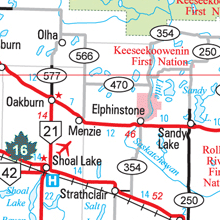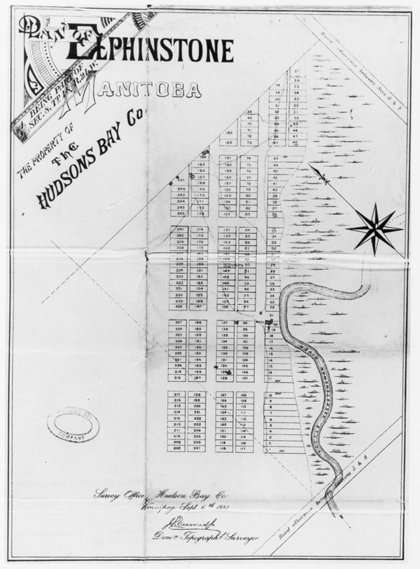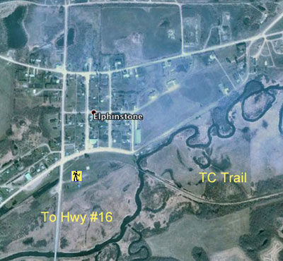 Elphinstone was named after Lord Elphinstone, who came about 1880 as a guest of Robert Campbell, chief factor of the HBC, and bought about 2,000 acres (8.1 km2) of land on the Little Saskatchewan River. Elphinstone post office was established 1 August 1887 with John A. McDonald as first postmaster. See also: Lord Elphinstone Ranch ![]() ![]() ![]() ![]() ![]() ![]() ![]() ![]() ![]() The bridge over the Little Saskatchewan River on this abandonned railway line is part of the Trans Canada Trail. The village of Elphinstone is attractively situated along the valley The Prairie Towns Collection... ![]() ![]() 1928 ![]() ![]() ![]() 50* 31' 43.90" N 100* 19' 24.76" W ![]() ![]() |