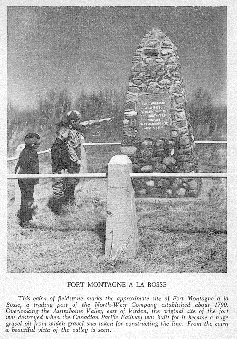 A fieldstone cairn marks the approximate location of Fort Montagne a la Bosse (also known as Fort la Bosse), a trading post of the North West Company established about 1790. http://www.mhs.mb.ca/docs/sites/fortmontagnealabosse.shtml ![]() N49.83920, W100.84425 ![]() ![]() ![]() ![]() ![]() ![]() ![]() |