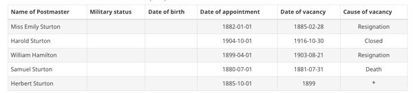 A Post Office est. 1880 - 1916.
