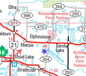 A site between Newdale and Elphinstone was once the headquarters of an 8,000-acre ranch established in 1879 by Scottish nobleman WIlliam Buller Fullerton Elphinstone (1828-1893). Elphinstone arranged the construction of several buildings, half of them out of local stone, including an eight-room ranch house as well as a barn with a full basement, with room for fifty head of cattle, in a beautiful spot overlooking the valley of the Little Saskatchewan River. Source: Historic Sites of Manitoba... http://www.mhs.mb.ca/docs/sites/elphinstoneranch.shtml See "Strathclair, Manitoba: Our Story to 1984" See: Elphinstone ![]() ![]() ![]() ![]() Sign along Lord Elphinstone Road ![]() ![]() ![]() |