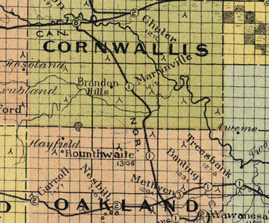 ![]() A railway siding of Martinville, on the CNR Wawanesa Subdivision, was established in 1889. It was the site of an elevator. The last record of its existence came from 1901. It's limestone foundation and pit were still visible during a 2017 site visit. Historic Sites of Manitoba...