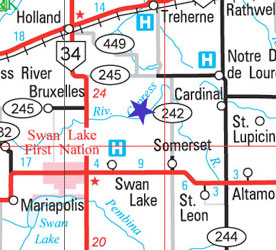 ![]() http://www.mhs.mb.ca/docs/sites/norquaycemetery.shtml N49.47980 A98.78053 ![]() ![]() ![]() Charles Holland and Thomas H. Pentland selected the site on rumours that a railway would pass through the area. T.H. Pentland served as Postmaster. The first house was built by Dr. Baldwin. There was a hotel, built and operated by the Priors, and called the Prior Hotel. William Brown was a blacksmith, and Ed Newly a tinsmith W. Holland was co-owner of the general store (along with Thonmas Pentland), and was also a land conveyancer, an issuer of Marriage licenses and a General Agent.There was also a Justice of the Peace. John McIntosh (1850-1902) and Elizabeth Westbrook (1852-1923) came west in 1881 from McIntosh Mills, ON. They operated a mill that was that was later moved to Manitou in 1893. D. Corbett is listed operating a chopping mill. That could have preceded Mr. McIntosh's gristmill or perhaps was separate operation. Mr. Berry who had been a butcher in England and who had brought his butchering tools with him, built a combination butcher shop and slaughter house in the village. His first customers were the boarding house keeper and other locals who flocked to buy their first fresh meat in six months. Dr. Pennefather and his family had come to Norquay, but his wife found that place too isolated. Upon completion of his house he moved his family to Manitou. Mrs. Pennycock, who served as a midwife was also a "very good nurse. A school was built, but it was soon to be closed as all the families moved away. The "English Church" and he held a service on Sundays in a shanty. They were the first Anglican services in this general area. When the Rev. Pinkham went to Norquay in 1884, Dr. Baldwin gave a site for a rectory. The nearest railway line at that time was the CPR at Manitou, 60 kilometres away. The CPR put a line 8 miles north at Holland, and the NCR laid tracks 4 miles south at Swan Lake. Without a railway, the high hopes of the village of Norquay faded and died. The general store was also moved. fire. In a few years, there was ''not a trace of the town'' to be found. |