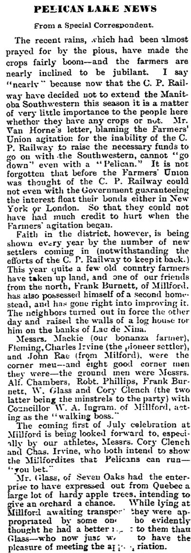 The community of Pelican Lake existed on the north end of the lake before the railway created the town of Ninette.