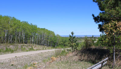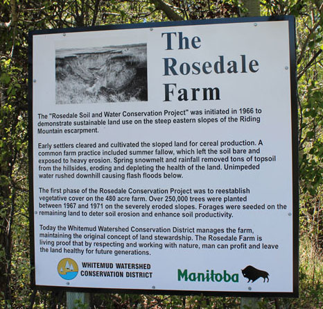 Rosedale Farm Trail The Trail is located 5 miles west of Eden on the Rosedale Farm. This ¾ section piece of land was rehabilitated as a demonstration project for soil conservation in farming practices. The SW and NE quarters of 23-16-16 were purchased in 1966. The NW quarter was added in 1971. In 1977, the Whitemud Conservation District assumed responsibility for the farm. In 2010, a group of local citizens established an all-season foot trail through the farm property. The trail passes through a variety of vegetation and topography and offers stunning views to the east of the Riding Mountain Escarpment. Interpretive signage helps to explain the history and features of the farm. https://whitemudwatershed.ca More info and photos... ![]() It is obvious that the site is well cared for. The trails are well marked, the rules are clear. It is no coincidence that we did not find a single Bud Lite can on our hike, and the signs havn't been vandalized by shotgun fire. ![]() ![]() A sturdy picnic table - near a great lookout. ![]() ![]() |
