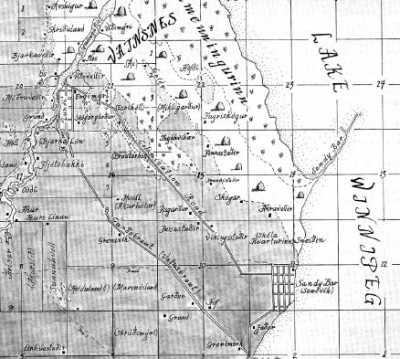 The settlement, known as Sandy Bar, founded in the 1870's, consisted of a half-dozen or so well-built winter fishing-season cabins, and a “summer hunting-season” collection of cabins, campsites and potato gardens located a few kilometres inland on the banks of the Icelandic River. But its chief significance is its connection to John Ramsay, an aboriginal whose contribution to the survival of early Icelandic pioneers is legendary. Despite being informed by government officials that he, and the rest of his band were being displaced by the new arrivals, Ramsay took pity on the woefully unprepared settlers, offering them friendship and help. By the turn of the 19th century the Sandy Bar townsite and the nearby cemetery had been largely abandoned by both Icelanders and aboriginals. The site soon returned to nature, save for Betsey Ramsay’s grave which lies near the long-deserted settlement. ![]() A sign marks the location of the settlement of Sandy Bar. ![]() ![]() ![]() |