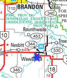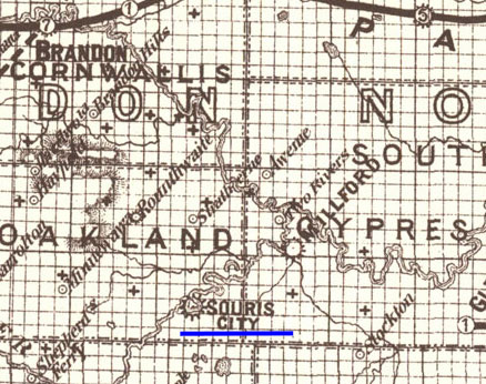 Souris City was located just south of Wawanesa - near the bottom left of this photo.. When the railway arrived at Wawanesa they moved.