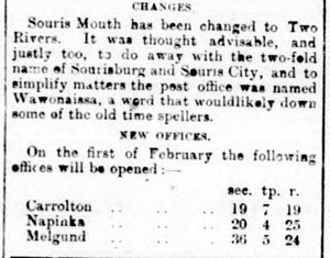 WMA's Some of the most scenic portions of the Assiniboine River are included in this WMA. Made up of numerous parcels of land along the river, some units contain riparian forest as well as stabilized sand dunes dominated by little bluestem, and blue grama grasses. WMA's - A Treasure in Distress ![]() Hind Expedition ![]() A Land Tilte Office and Post Office established ca. 1880. ![]() Later refered to as Two Rivers. A store and school were also located there. ![]() Brandon Sun, Jan. 21, 1884 ![]() Main trail in... N - 49.679802 W - 99.573187 Overlook... N. 49.666374 W- 49.566354 ![]() |