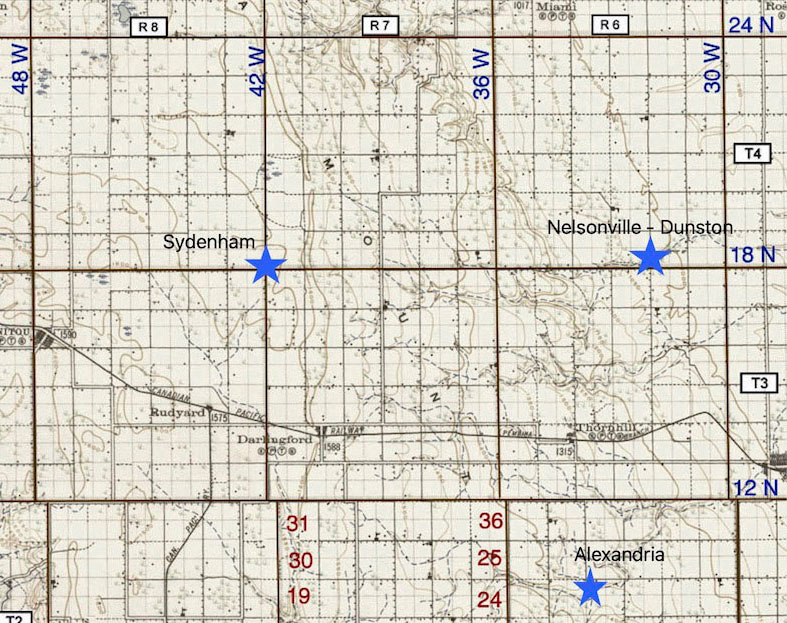 Sydenham was located at the intersection of SE 1-4-8, SW 6-4-7 and NE 36-3-8