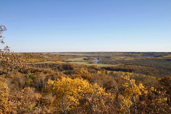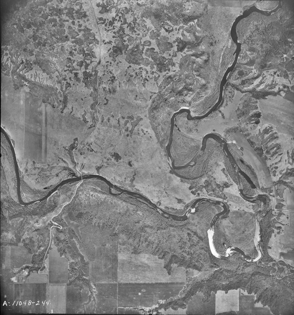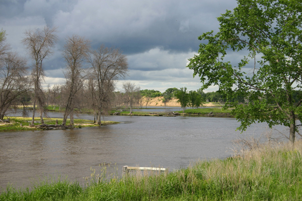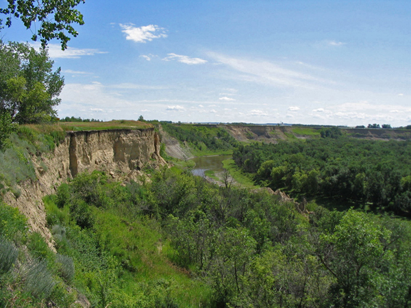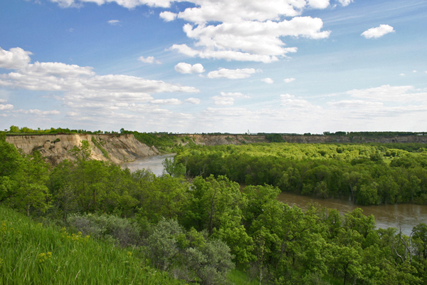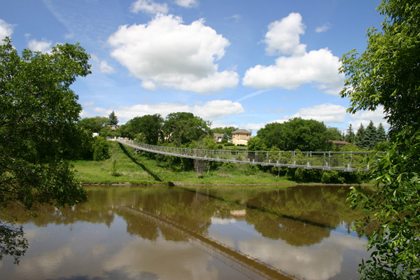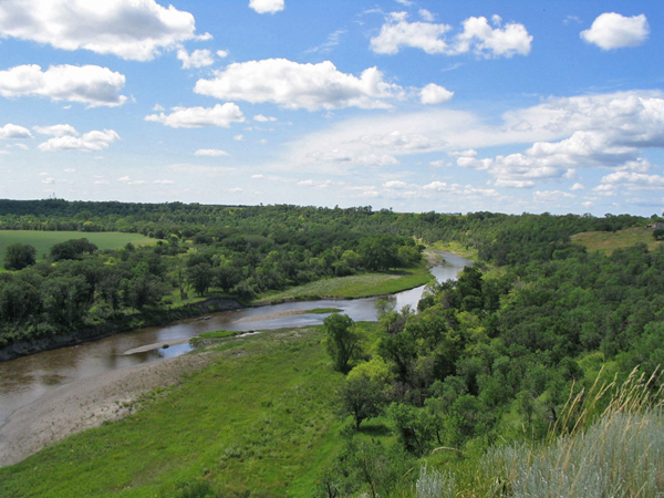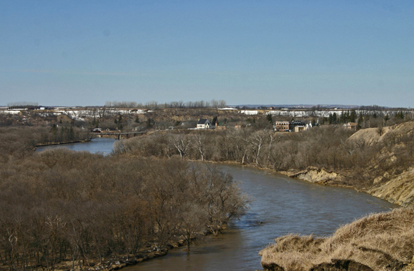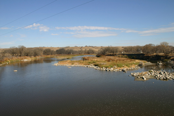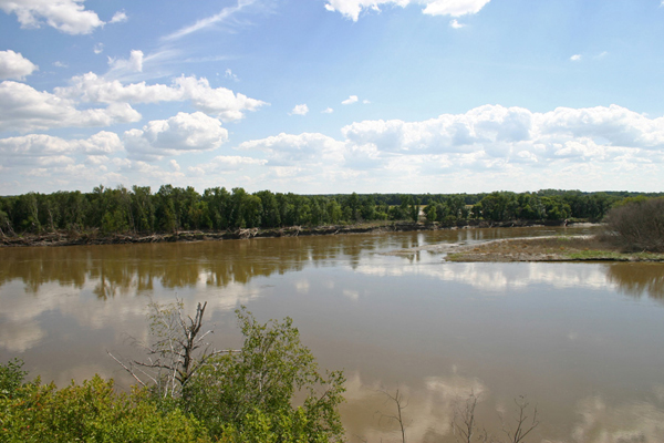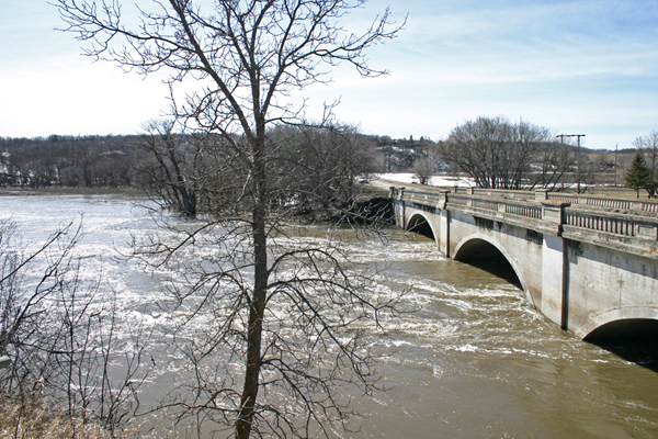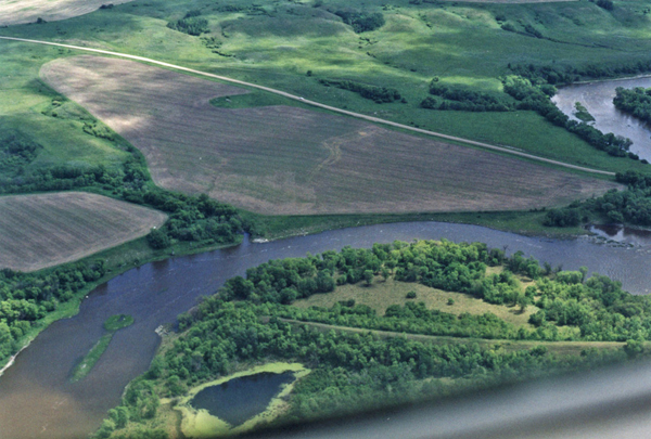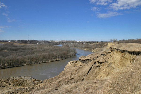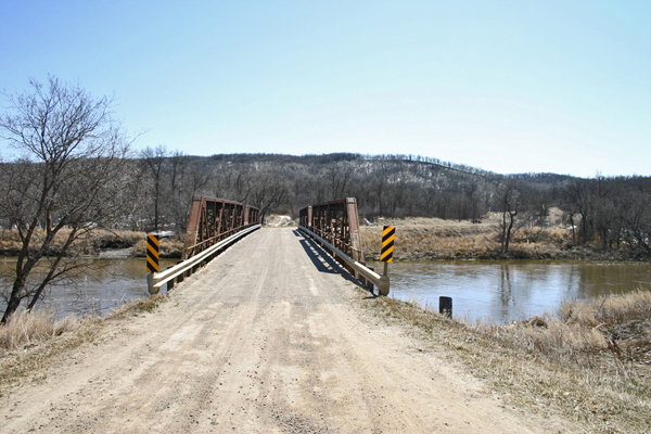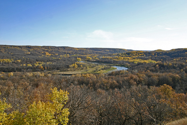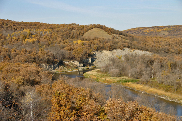 river enters a horseshoe bend as it approaches Highway #2 near Wawanesa.