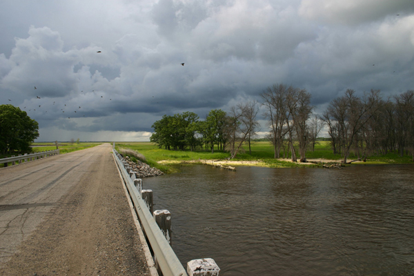 this flat land, even a minor flood can cover quite a bit of farmland.