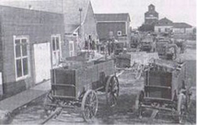 nearby. Many were still using horse-drawn wagons to deliver grain