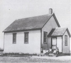 built at this site, NE20-6-14W, and the original school building was