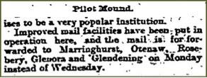 driven from Pilot Mound. Before that Alex Kelso had the mail in