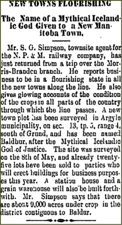 In 1899 the Baldur Gazette Historical Edition offered this introduction