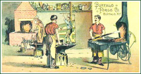 Thiis Buffalo Forge advertising card shows an "old" brick forge and