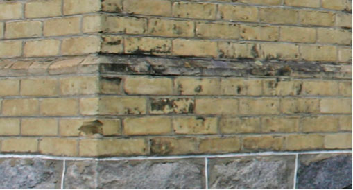 or by particles of ironstone in the mortar leeching out. Rust stains on