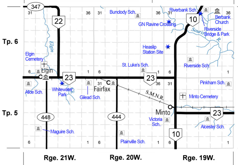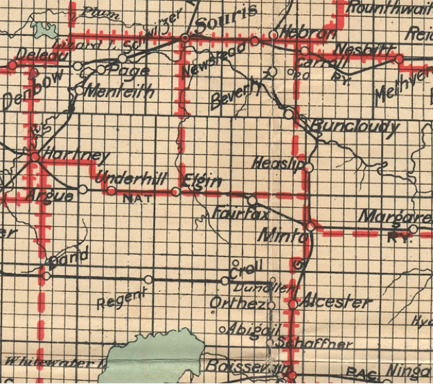 Bunclody and ran just west of Minto. Highway 21 was in place.