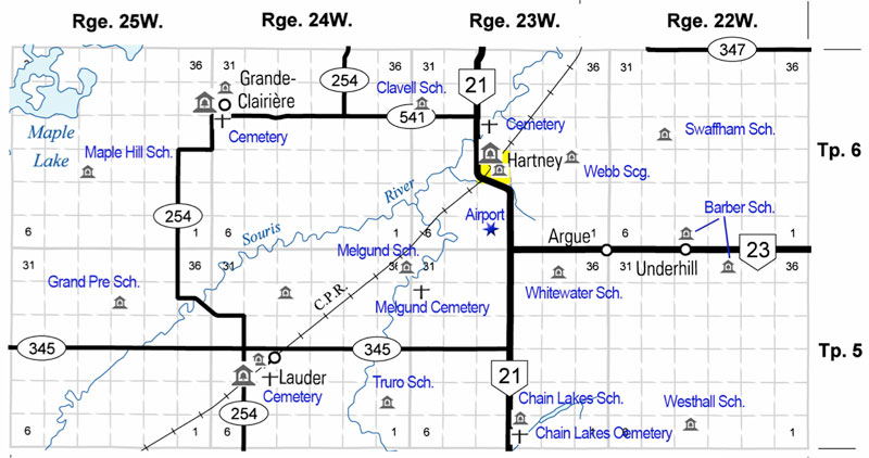 Cameron and Whitewater as well as the Town of Hartney. It contains an