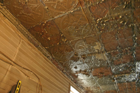 The pressed metal ceiling and some original shelving is still evident
