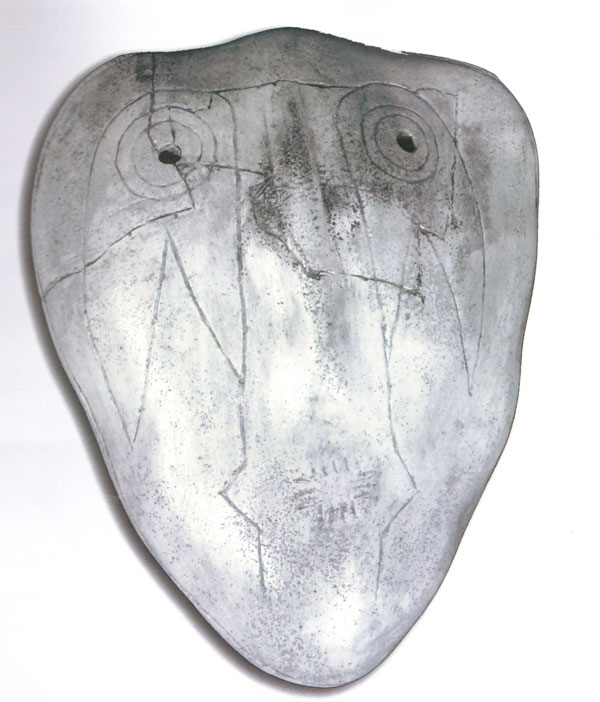 Incised pattern of the the forehead, eye and nose portray Thunderbird.