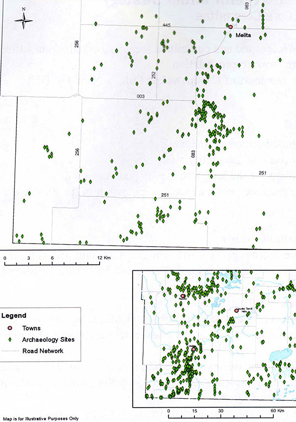 Location of one of the densest concentrations of archaeological sites in the Province (illustration courtesy of the Historic Resources Branch).