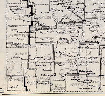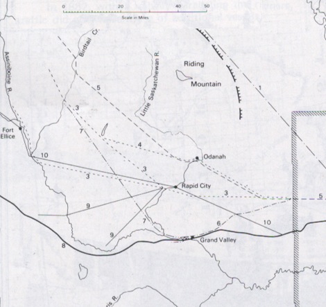 towns seen at Rapid City, Minnedosa (Tanner’s Crossing), Millford (near