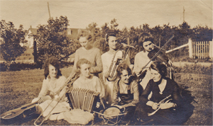 5. Recreation, Culture & Social Life ![]() The Hartney Concert Band – every town had one. ![]() A hockey team from Baldur – dressed for a road trip. ![]() These young curlers from Killarney were likely happy to play with home-made curling rocks. ![]() A gathering of car enthusiasts in Boissevain. ![]() A hockey team in Bossevain. Team photos were popular - then as now. ![]() A trip to town or just an outing. The Sveinsson farm near Grund. ![]() Elgin Curling? ![]() Tennis in Deloraine ![]() An outing in the new car? ![]() Entertainers ![]() Hartney Brass Band ![]() Horse Racing at Killarney Fair ![]() Killarney Ladies Silver Band 1908 ![]() ![]() Killarney