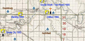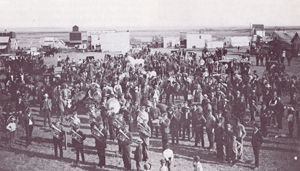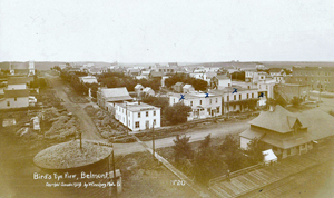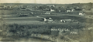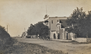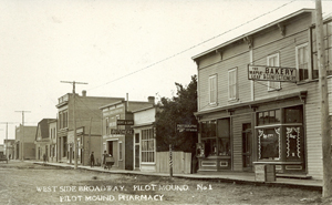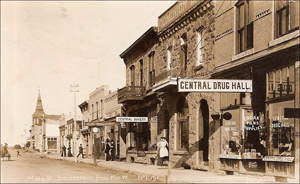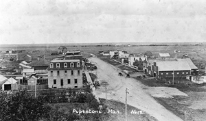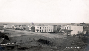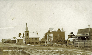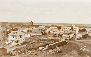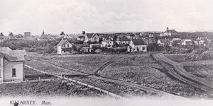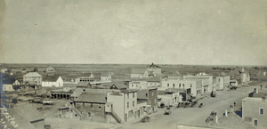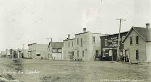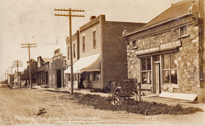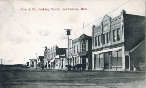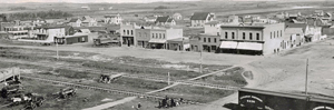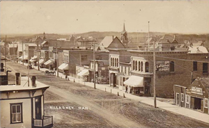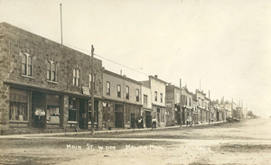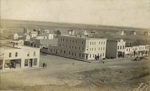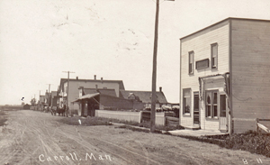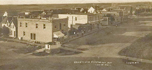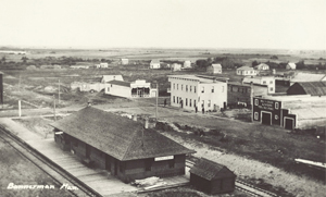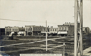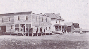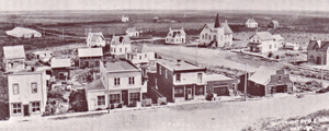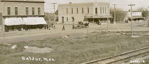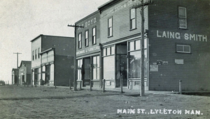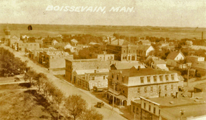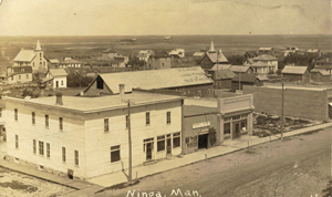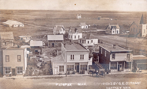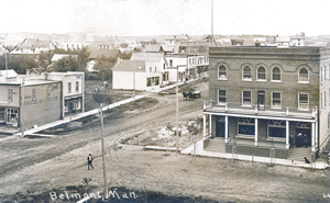 6. Towns & Villages - 1800 - 1910 Pioneer photographers have left us an invaluable record of the development of villages and towns. What follows is a selection of images from the Southwest Corner, usually comprised of an overview (if available) of the village, and a detail from the commercial district. ![]() ![]() ** The establishment dates provided are based upon the creation of the town site that coincided with the arrival of a rail line. In many cases the community existed in the region as a fledgling village and whatever services existed (often just a Post Office in a farm home) were moved to the location selected by the railway company. An Introduction Once the railway service linked the small towns of the prairies with the rest of the world, and it became much easier to move goods and people, all manner of services and products became available. Of course the focus was on practical things; food, clothing furniture and building supplies. But once the basics were taken care of, the pioneers were ready for photography. So in town like Boissevain, created almost overnight in 1885 by the arrival of the railway, photos start to appear within a few years. ![]() Photographer Meirs visited Henderson Bros. threshing outfit in the Caranton district northwest of Boissevain in 1887. (Courtesy W. D. Henderson, Brandon.) This photo of the first flour mill in Boissevain was taken 1889. (Photo courtesy W. Moncur) As the railways moved into the southwest corner creating Deloraine in 1887, Hartney in 1889, and Melita in 1891 photography followed quickly. ![]() One of the first photos taken in Melita was of their first Fair in 1892. One of the earliest photos of Hartney featured the first C.P.R. Station and was taken from the elevator. But the golden era of small town photography really began about 1900, and from that time we have a wealth of images that document the times. The following is just a sample. Baldur - Established 1890 ![]() ![]() Both these photos are from about 1904. Most available photos of Baldur are from Bates and from the James Wall Collection. Other Baldur Photographers: Walter Murney was a photographer and worked with S. Frederickson in 1904, as travelling photographers, selling pictures from 25 cents a dozen up. In 1905, Murney set up a study in T.W. Sexsmith's hotel. Frank Nelson was also an avid photographer and took post card size pictures, doing all the developing himself. He was always on hand at the house parties taking pictures of those present; people were always very co-operative at arranging themselves for a picture. Bannerman - Established 1905 ![]() ![]() Bannerman was just three kilometres north of the border. When the railway line was abandoned in 1936, this once important Port of Entry lost its purpose. The site is a field today. Belmont - Established 1891 ![]() ![]() Belmont was an important railway town, with a roundhouse, water tower, and bunkhouses for railway workers. Boissevain - Established 1885 Boissevain's first photographer appears to have been John Nicholson, in 1892. That same year a W. E. Markle had very aggressive advertisements in the Globe, but seems to have been around for only a couple of months. In 1893 James E. Miers established the Boissevain Photographic Studio which he operated until he sold to W. J. McKim in 1899. In the meantime F. W. Plows was also doing photography, in 1894. By 1904 Osborne's Studio was located over what is now Pringle's store. He was Boissevain's photographer for many years. ![]() Boissevain remains a thriving commercial centre with a main street that has retained its character. ![]() Carroll - Established 1893 ![]() ![]() The photo of the Carroll Hotel is by Bates – and the street scene is likely his as well. Cartwright - Established 1885 ![]() ![]() Both the Winnipeg Photo Co. and P.C. Edwards were active in Cartwright. Deloraine - Established 1887 ![]() ![]() The “first” Deloraine was established in 1881 close to the busy Land Titles Office on the Boundary Commission Trail. The railway bypassed that location in 1887 and the town moved, leaving behind only a stone bank vault now preserved on the original site. Elgin - Established 1898 ![]() ![]() Durrant and McDonald, both from Hartney, serviced the Elgin area. Elva - Established 1891 ![]() ![]() The photos of Elva are unattributed, likely from Melita photographers. Fairfax - Established 1899 ![]() ![]() Glenboro - Established 1885 ![]() ![]() Edgar Smith was born in Nottingham, England, April 21, 1873. Following his school education he learned the photographic trade from his father, who was in the photography business under the name of J. B. Smith and Son and they had won prizes for their photographs from 1865 to the 1880's. In 1903 Mr. E. Smith came out to Canada and in about 1904, he settled in Glenboro, He purchased the Photographic Studio from E. L. Lane and was in this business until 1922. Goodlands - Established 1899 ![]() ![]() The Winnipeg Photo Co. had offices in nearby Waskada, but this fine photo of the Station doesn’t appear to be one of theirs. The community was started by the Goodlands brothers when the railway arrived from Deloraine. Hartney - Established 1890 ![]() The Canadian Northern Branch arrived in 1901 making Hartney a railway crossroads. This view would be from an elevator on that CN line where it enters Hartney from the west. ![]() The building at the centre was the Pump Factory, soon to be demolished to make way for the Town Hall. Holmfield - Established 1895 ![]() Like all new railway towns, Holmfield grew quickly. It was home to the Harrison Milling Company, one of the most successful, and certainly one of the longest lasting operations of its type in the Southwest Corner. ![]() This would likely be the earliest surviving photo of Holmfield – 1888. Killarney - Established 1895 ![]() As far as is known the first photographer in Killarney was a George Martin. He is listed as one of the “Professional and Business Men in Killarney be