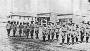 Preparing for War, 1913. Note the Donnelly & Archer building at
