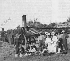 threshing time. T.A. Bulloch at the far left, then Robert Bulloch.