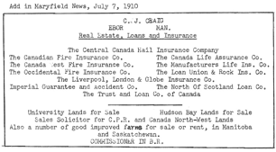 establishment of the Reston Wolseley C.P.R. Branch line. The