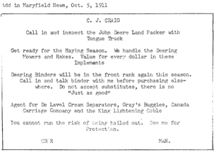 Later he started an implement business in Ebor and in Ewart. In Ebor he