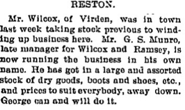In the spring of 1893, Mr. Wilcox, a pioneer merchant of Virden