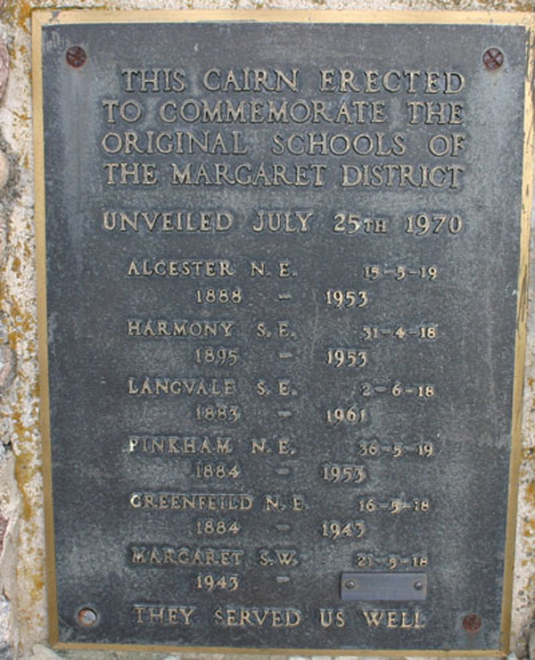 Margaret & Area / Margaret ![]() In 1891’s, pioneer John Magwood applied for and received a Post Office, which he named Margaret after his mother. It was located in his home, about a kilometre north of the current village. Margaret was registered as a village in 1900. ![]() King’s United Church King’s United Church, built in 1900, was named in honour of Rev. John King, the first Principal of Manitoba College. At first Presbyterians and Methodists shared the facility. They began worshiping together long before Church Union in 1925. ![]() The Rink The rink was built in 1947 using Dring rafters from Boissevain. The School Yard A monument dedicated in 1970 on the site of the Margaret School, celebrates the region’s original schools. ![]() The Nelson Creek Bridge ![]() This abandoned concrete arch bridge over Nelson Creek was constructed between 1916 and 1917 just north of Margaret. ![]() ![]() ![]() ![]() Margaret Cemetery The first burial in the Margaret Cemetery was William McKellar, in 1888 N 49.41442, W 99.85717 ![]() This cemetery contains a monument, unveiled in June 1921, commemorating men of the local area killed during military service in the First World War and Second World War. The first verse of “In Flander’s Fields” is inscribed on the base. |
