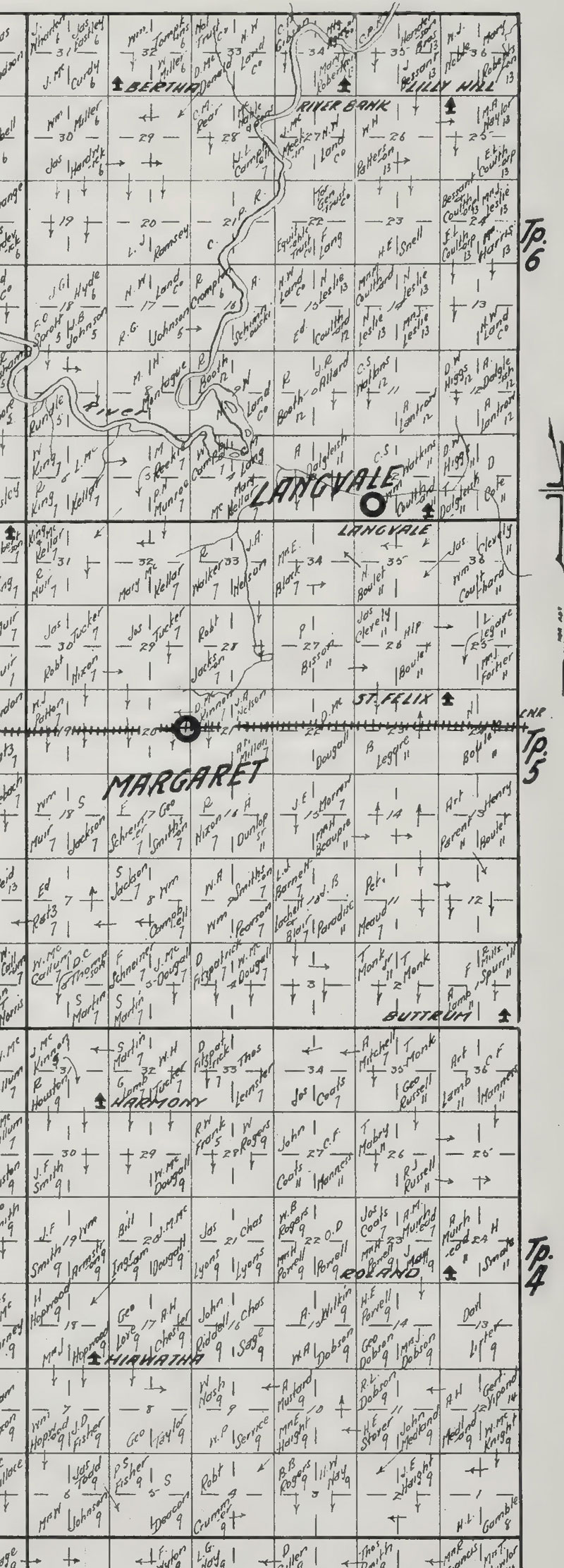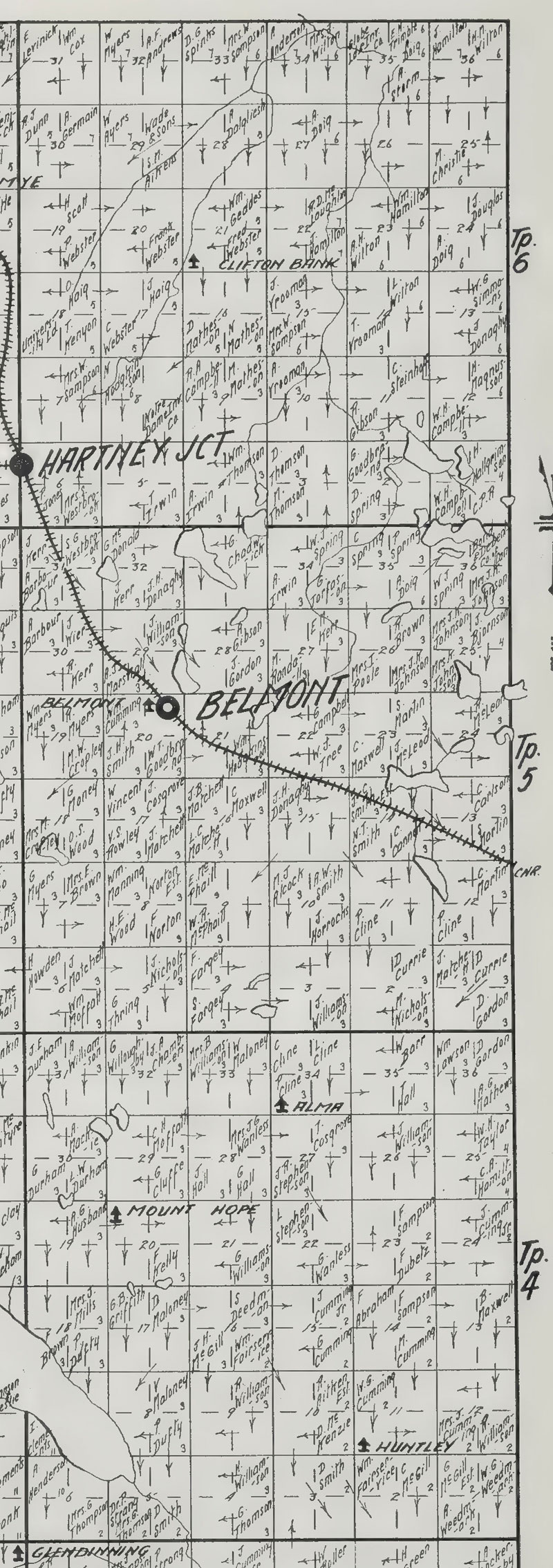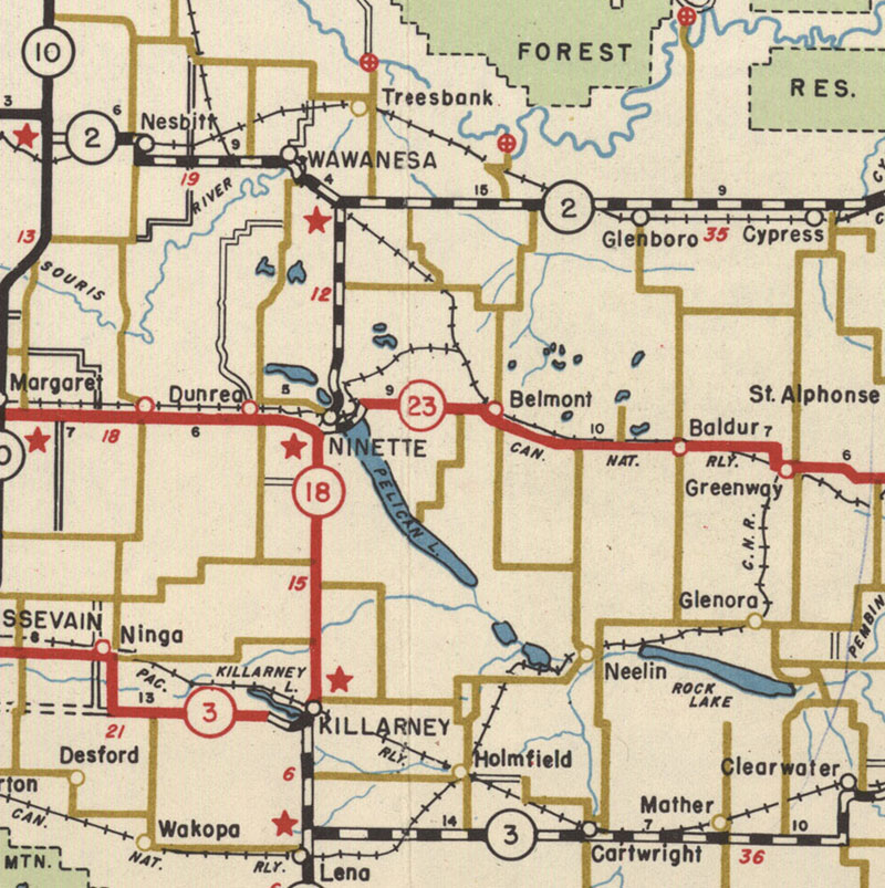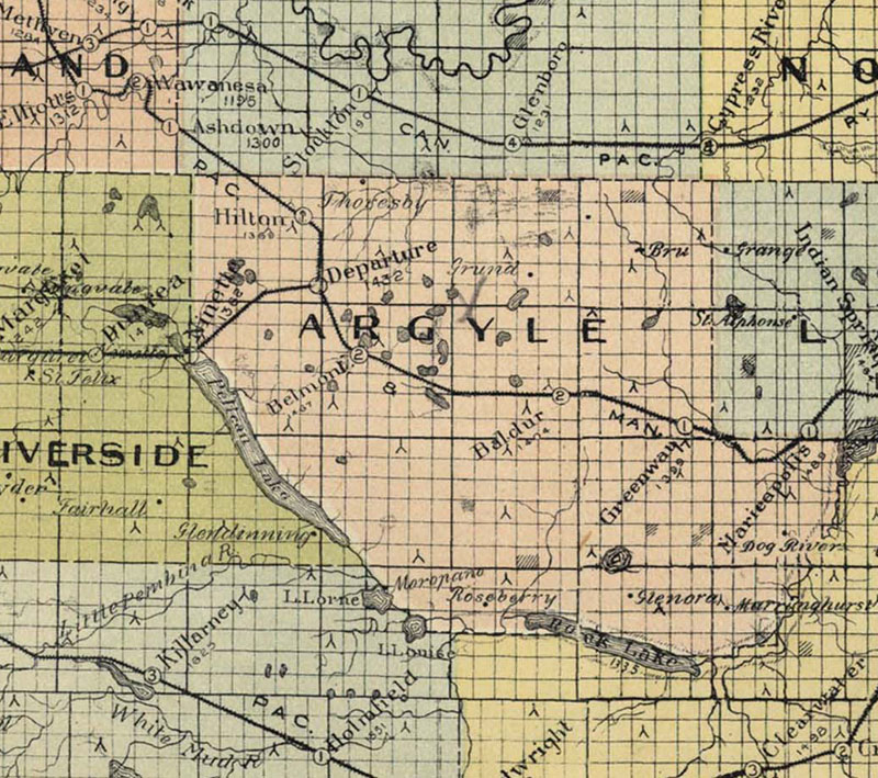 ![]() Map Archive 1. Tracing the changes in our region. 2. Cummins Rural Directory Maps - 1923 3. Selected Topical Maps 1. Tracing the changes in our region ![]() 1790 Fort Epinette (Pine Fort) was located north of Glenboro. Rib Lake is Rock Lake. Rib River is the Pembina. ![]() 1825 The Souris River was also called the Sandfly. The locations of Pine Fort and Fort Brandon are incorrectly reversed. The "Fact" noted above Fort Brandon stands for Factory, as the Fur Trade Posts were sometimes called. It was located at the crossing near the Brandon Rapids. The Rapid River we know as the Little Saskatchewan. The city of Brandon would be located about midway between the mouth of the Little Saskatchewan and the Rapids. ![]() 1877 This map shows the extent of the survey in 1877. It had almost reached Prairie Lakes. ![]() 1882 The Land Office at Souris Mouth was where homesteaders heading towards the Pelican Lake region would register their claim. Many early settlers came by steamboat to that point and could get provisions at the nearby village of Millford. ![]() Postal Routes - 1884 The Post Office at Craiglea opened in 1884 but didn't make it onto this map. ![]() Mail to the area now known as Prairie Lakes came by way of Millford. ![]() 1887 Post Offices and the beginning of Railway Service. ![]() 1887 ![]() 1900 Railway service is in place. ![]() 1912 ![]() 1915 ![]() 1926 Highways began appearing on maps in the mid 1920's. ![]() 1956 2. Cummins Rural Directory Maps - 1923 ![]() Moving east to west.... ![]() ![]() ![]() ![]() Download a pdf of the full map for Prairie Lakes... View the full Cummins Rural Directory 3. Topical Maps ![]() ![]() ![]() Lang's Crossing |