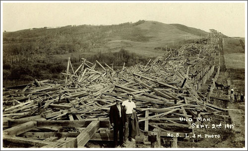 wreckage of the Minnewashta Bridge near Uno, in 1915