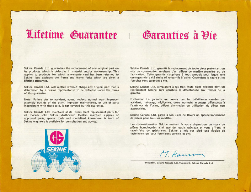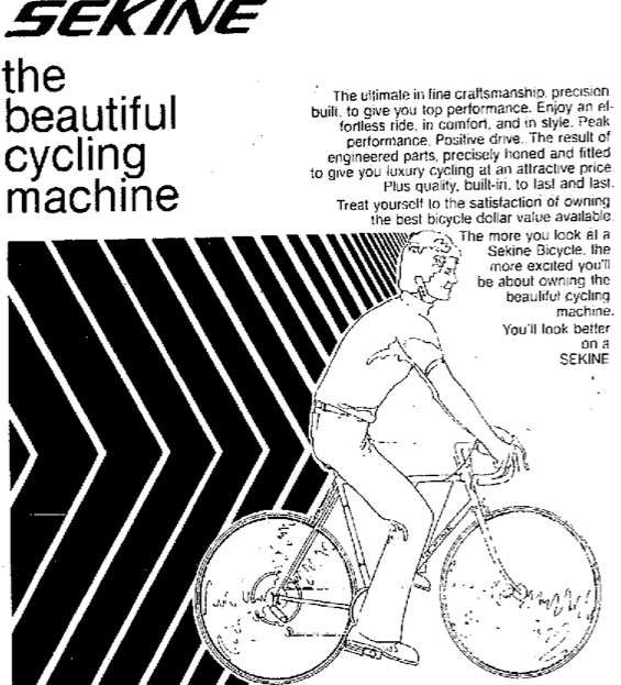 featured on the more sophisticated Sekine bicycles. Gone also is
