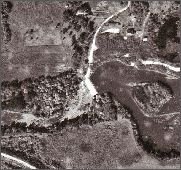 Branch rail bed circling in from the top left and the Cossar Crossing