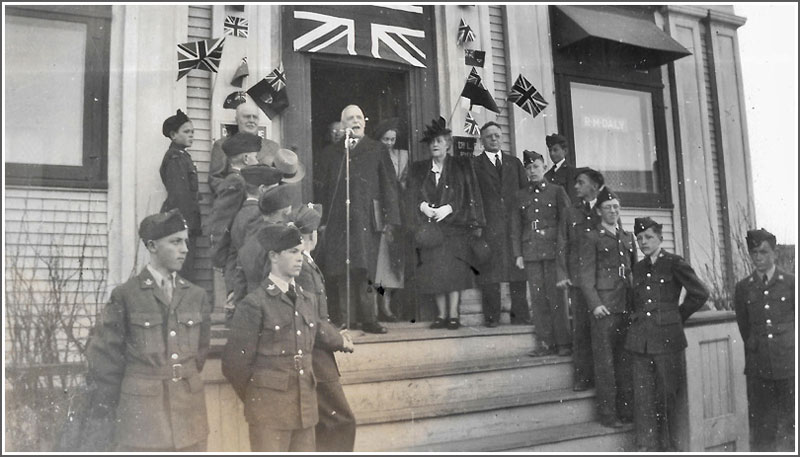 Minister Louis St. Laurent on the steps of the old bank, then serving